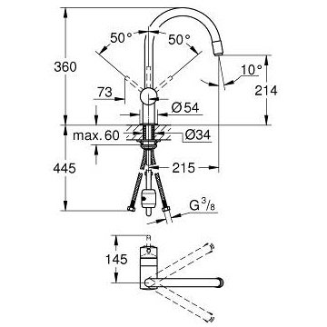 Смеситель для кухонной мойки GROHE Minta с вытяжным изливом, хром (32918000)
