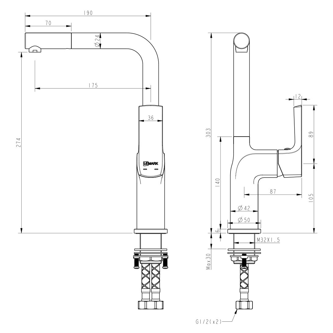 Смеситель для кухни Axor (Аксор) Starck, однорычажный, с выдвижным душем, ½ 10821000 хром