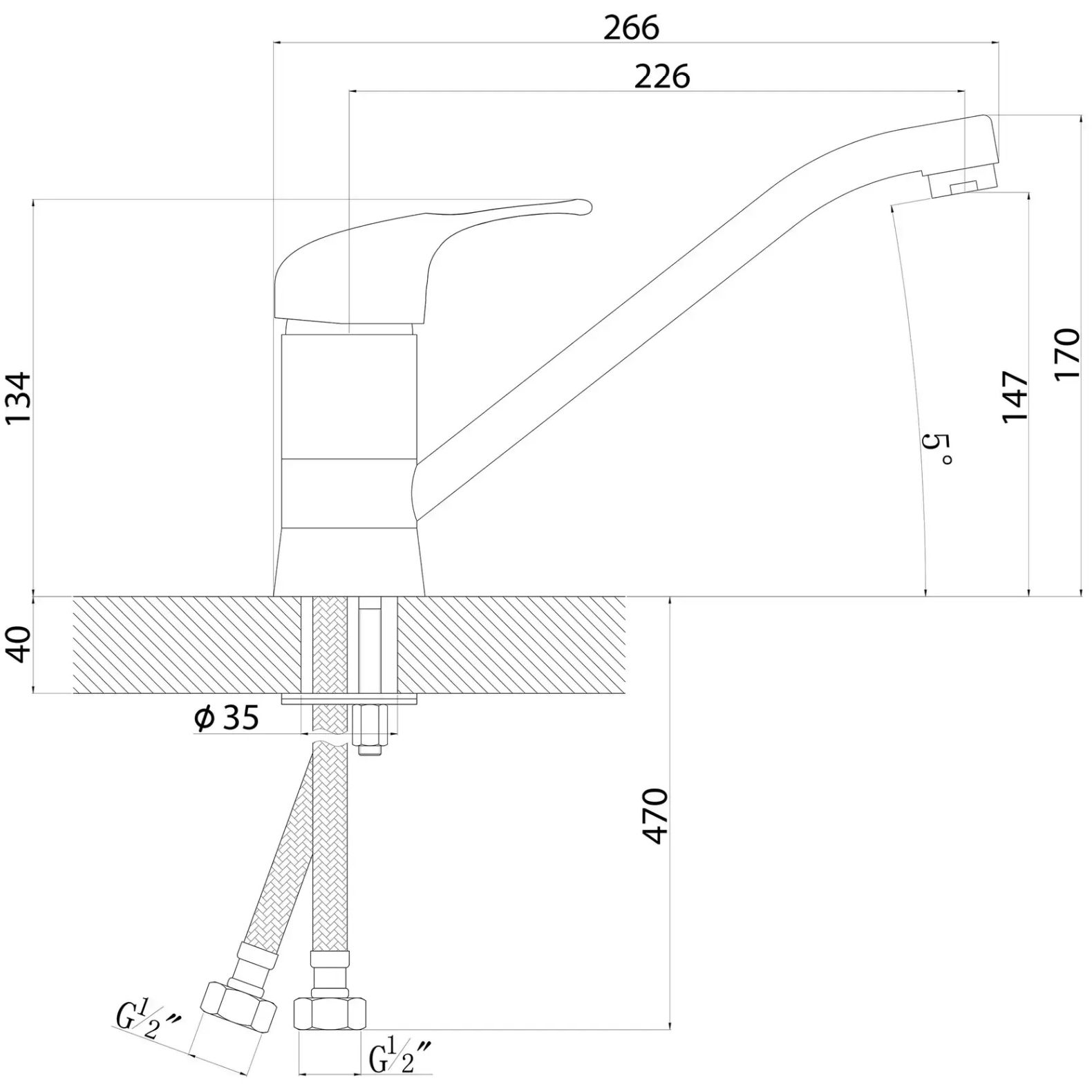 Длина излива (мм):258 p>