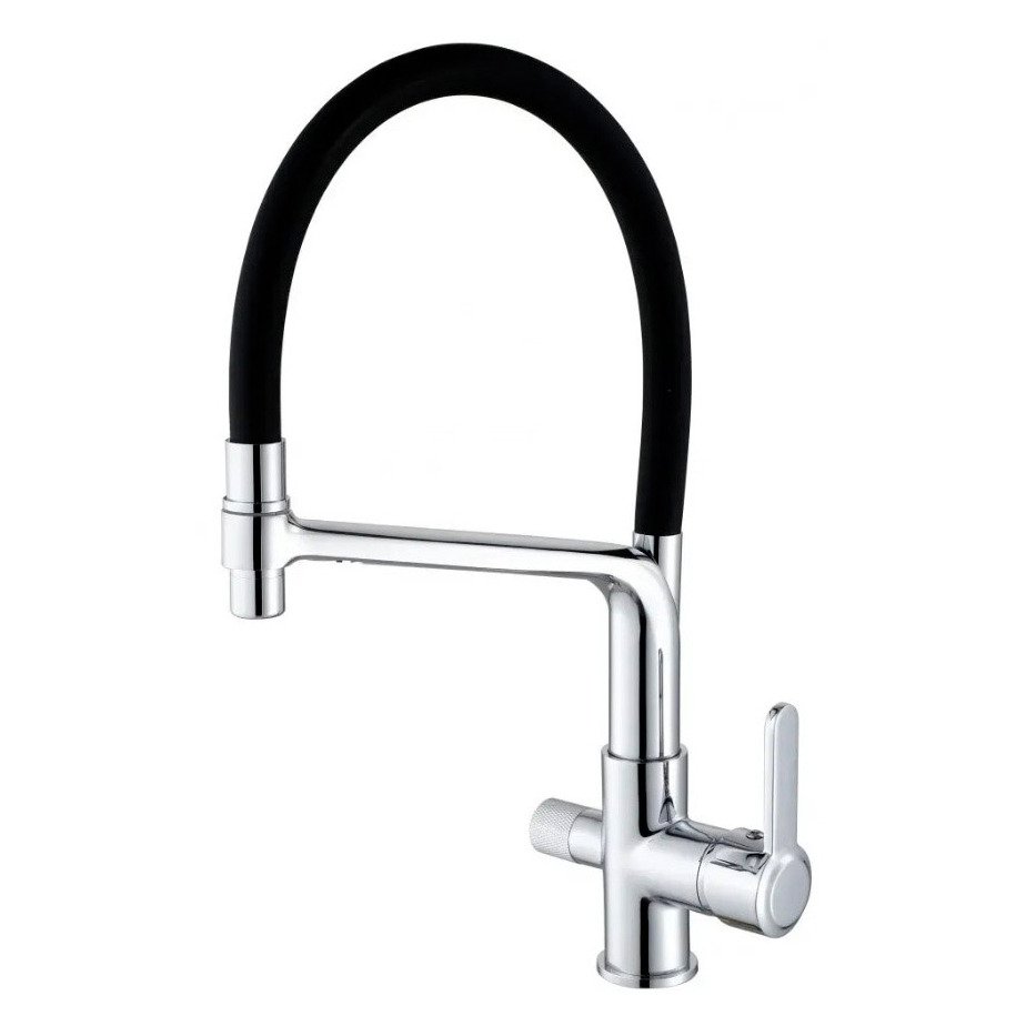 Смеситель Hansen (Хансен) для кухонных моек под фильтр черный, хром HL15075-C