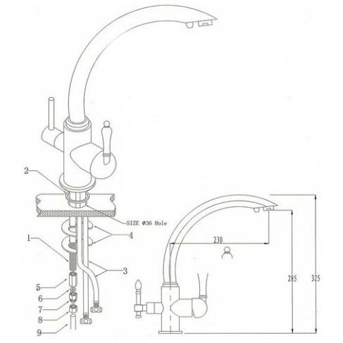 длина излива (мм):230 p>