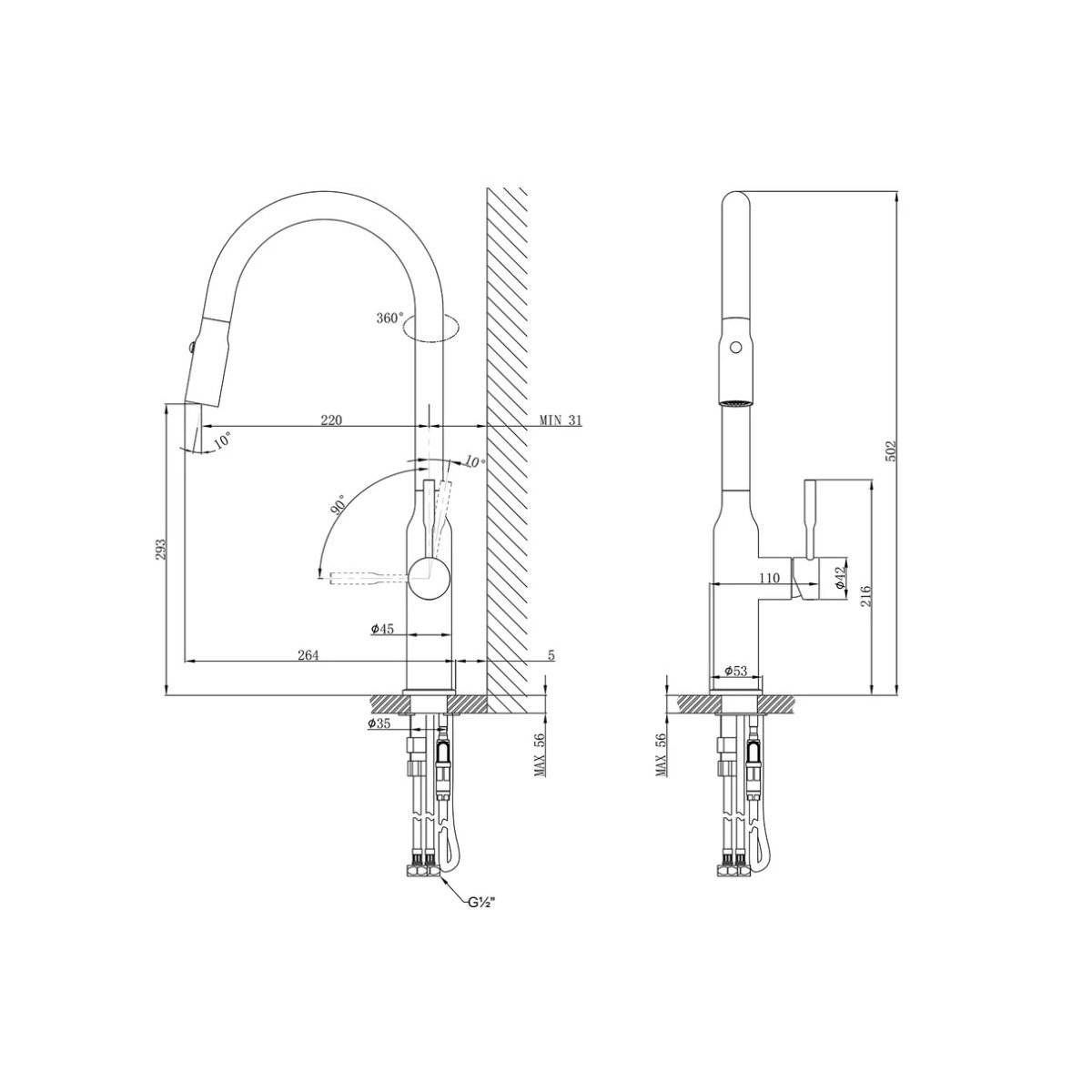 Вытяжной излив с двумя режимами аэрации позволяет направлять струю воды в нужное место, что особенно удобно при мытье посуды или наполнении больших емкостей.