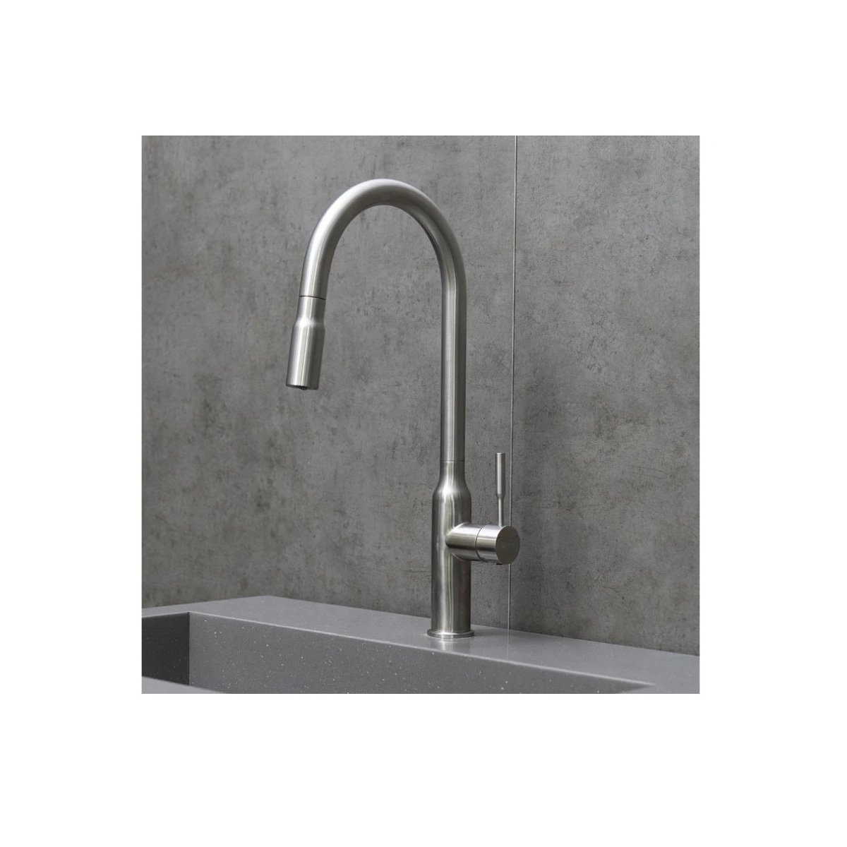 Смеситель Lemark (Лемарк) Expert для кухни с вытягивающимся поворотным изливом (LM5086S) сатин
