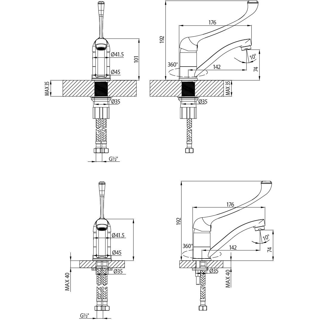 Комплектация:Аэратор пластиковый, ламинарного потока Керамический картридж 35 мм Гибкая подводка ½” 35 см Присоединительная группа для настольного крепления - 2 комплекта Металлическая рукоятка p>