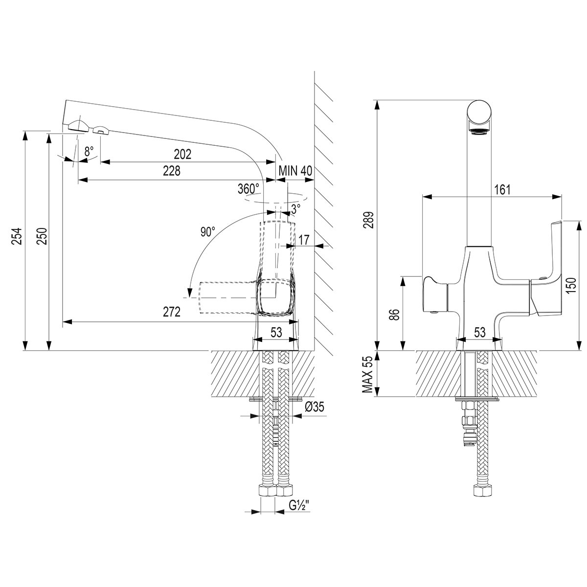 Комплектация:Аэратор Neoperl® Perlator® для водопроводной воды Аэратор Neoperl® Perlator® для питьевой воды Керамический картридж Sedal® Cold Start Termaclick Mirror 35 мм Для крана с питьевой водой: кран-букса с керамическими пластинами (угол поворота – 90°) Гибкая подводка ½” 60 см Переходник ¼” для подключения шланга от фильтра с питьевой водой Присоединительная группа для настольного крепления Металлические рукоятки p>