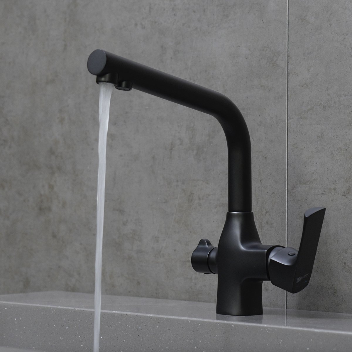 Смеситель Lemark (Лемарк) Ursus для кухни с подключением к фильтру с питьевой водой (LM7258BL) черный