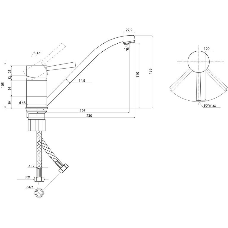 Высота излива (мм):110 p>