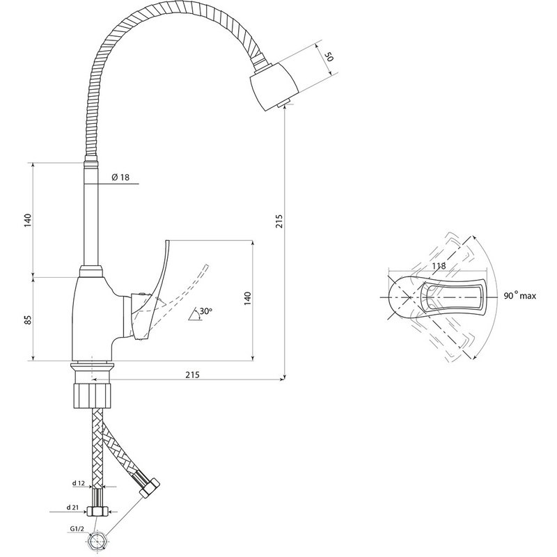 Высота излива (мм):215 p>