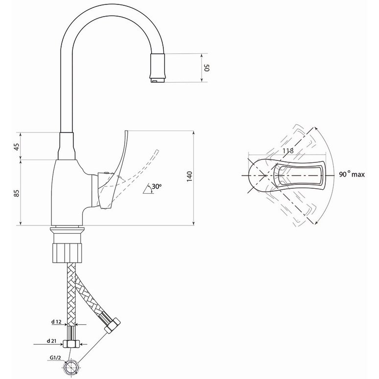 Смеситель для кухни с подключением фильтра G.Lauf (Глауф) ZAP18-A090, нержавеющая сталь