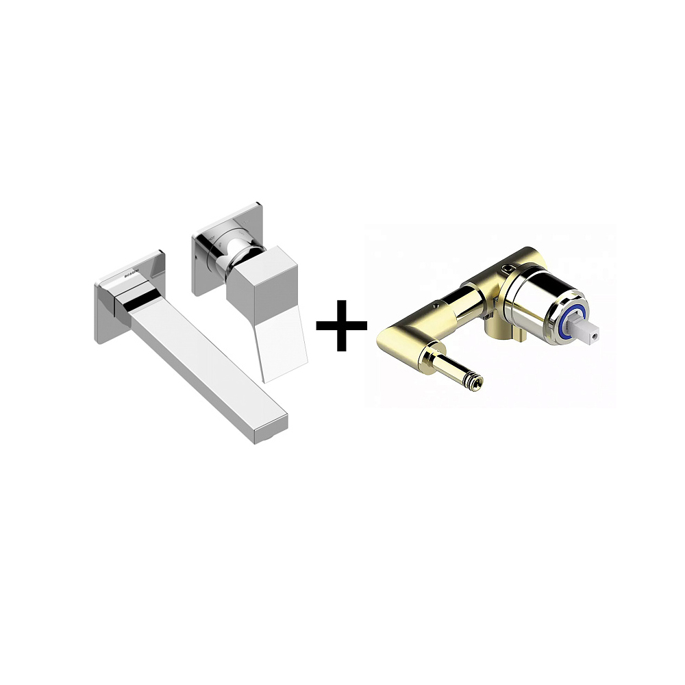 Комплект Bossini (Боссини) TEO Смеситель для раковины настенный встраиваемый с изливом 18.5 см плюс Встраиваемая часть однорычажного смесителя Z00731.030 и Z00801 хром