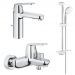 Комплект смесителей Grohe (Гроэ) Eurosmart Cosmopolitan для раковины, ванны с душевым гарнитуром и полкой, хром 1000179