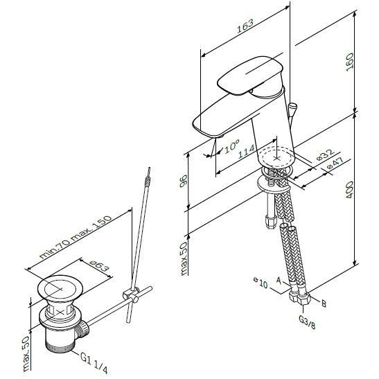 Смеситель для раковины Ideal (Идеал) Standard с нажимным донным клапаном Click BC835AA хром