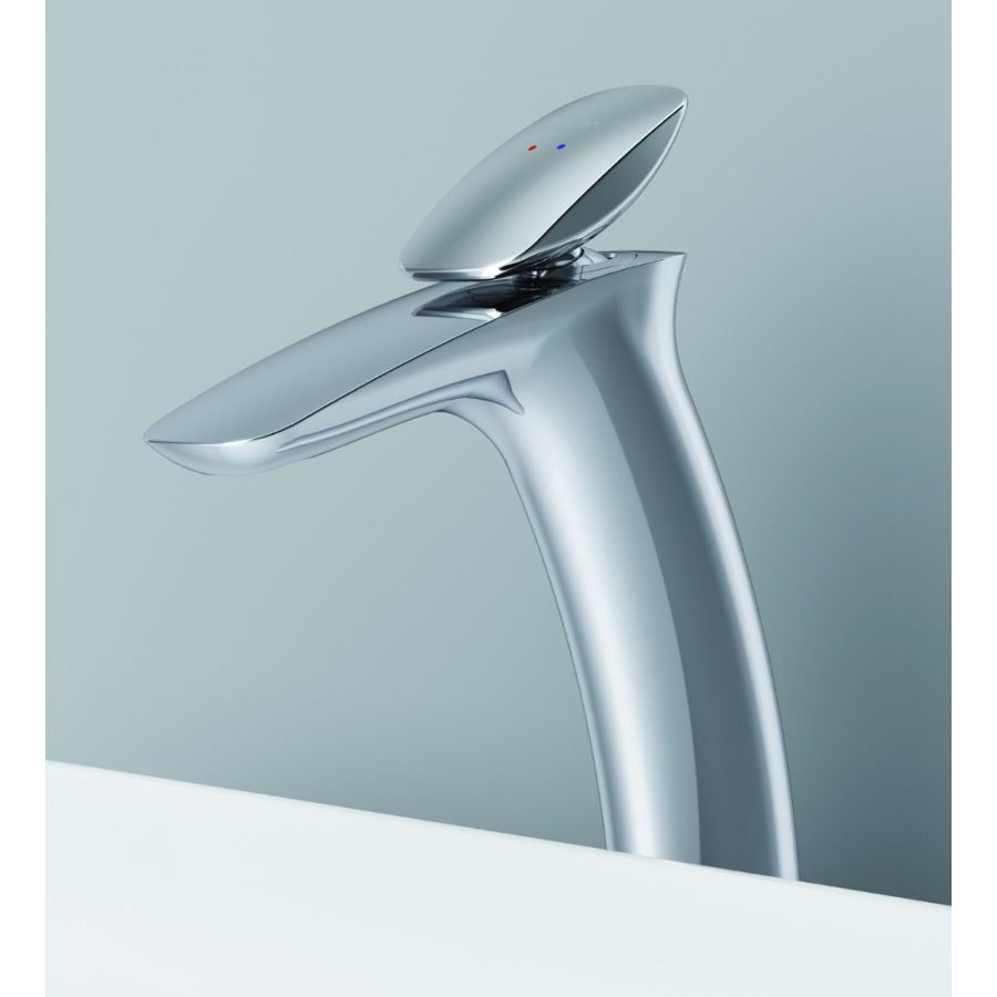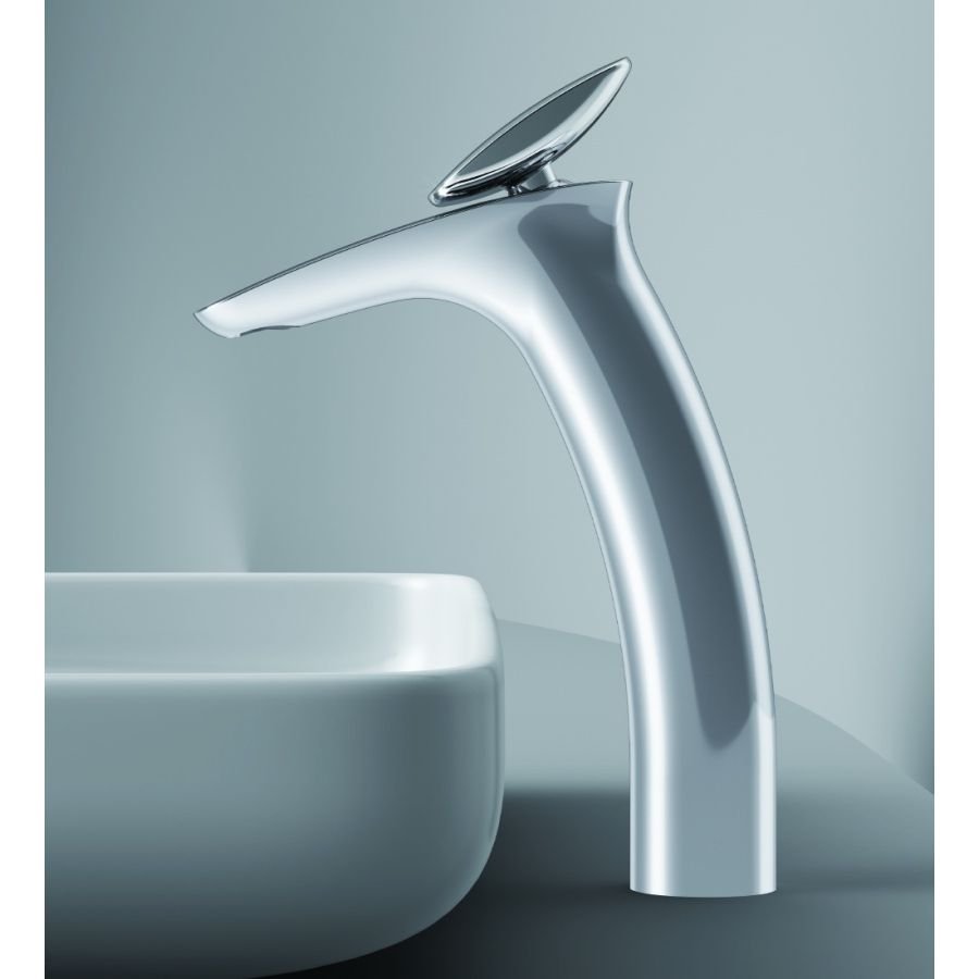 Наклон и плавный изгиб высокого корпуса смесителя с одной стороны придают неповторимую динамику дизайну, с другой — обеспечивают удобство использования на раковине с глубокой чашей.