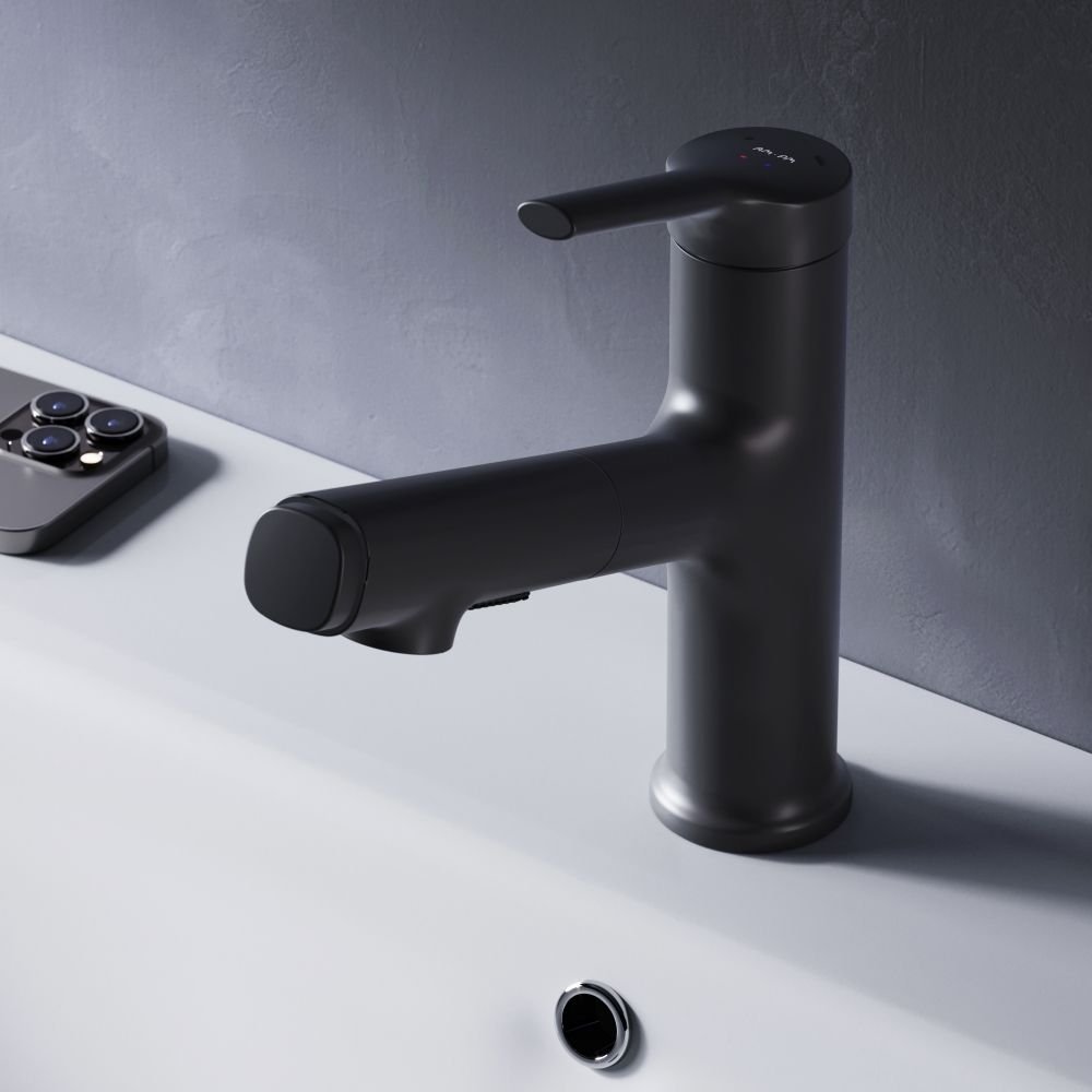 Доставка Смеситель Am.Pm (Ам.Пм) для раковины с вытяжным изливом X-Joy S F85B02922 черный из Москва в районы и города ЮВАО, ЮЗАО, ЮАО, Новомосковский АО, Одинцово, Подольск, Щербинка, Троицк, Строительный рынок Славянский мир, 41-й км МКАД, бывшая Мельница, Красногорск, Домодедово, Тёплый стан, Коммунарка, Мосрентген, Видное, Мамыри, Краснознаменск