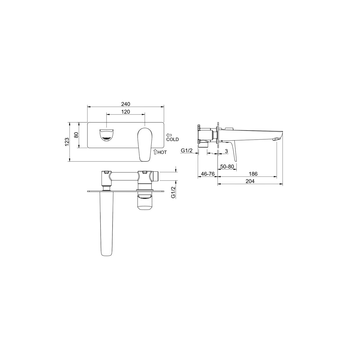 Смеситель Aquatek (Акватек) Бетта (Betta) для раковины настенный (внешняя и скрытая часть), шлифованный черный хромAQ1113BGM