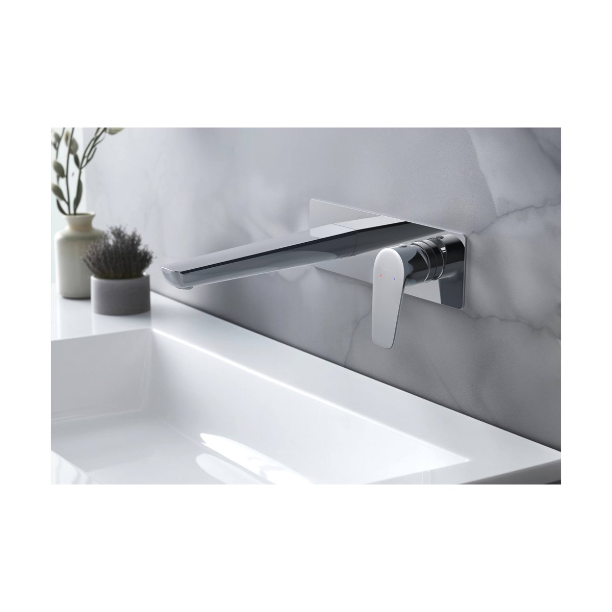 Комплектация:• Смеситель (внешняя и скрытая часть) • Декоративная накладка на стену из нержавеющей стали 3 мм • Излив смесителя p>