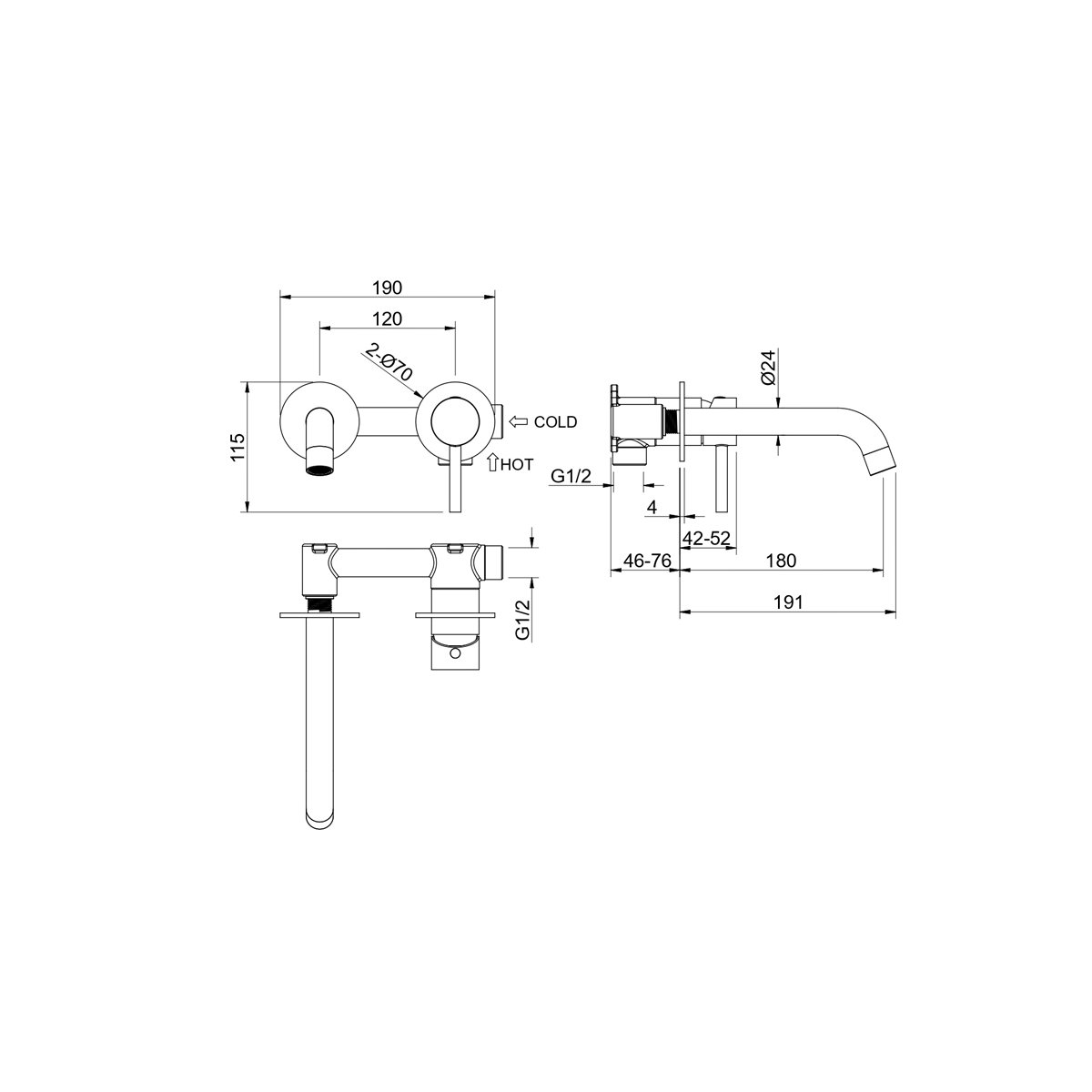 Смеситель Aquatek (Акватек) Европа для раковины настенный 2 отв. (внешняя и скрытая часть), шлифованный черный хромAQ1313BGM