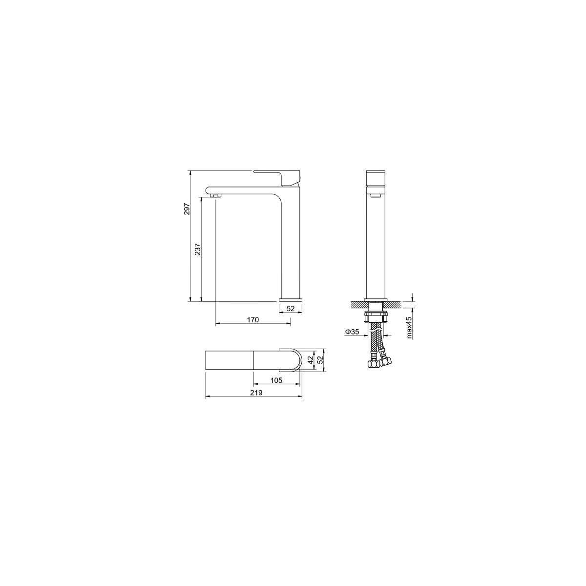 Высота излива (мм):237 p>