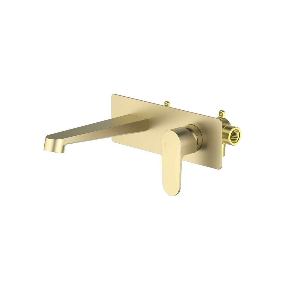 Смеситель Aquatek (Акватек) Оберон для раковины настенный (внешняя и скрытая часть), шлифованное золото AQ1213BG