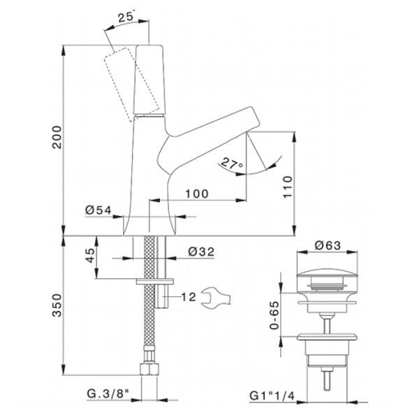 Смеситель Cisal (Кисал) Vita однорычажный для раковины 1 отверстие с донным клапаном, цвет: хром VI00051421