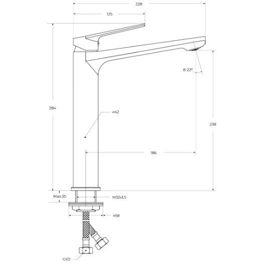 Высота излива (мм):238 p>