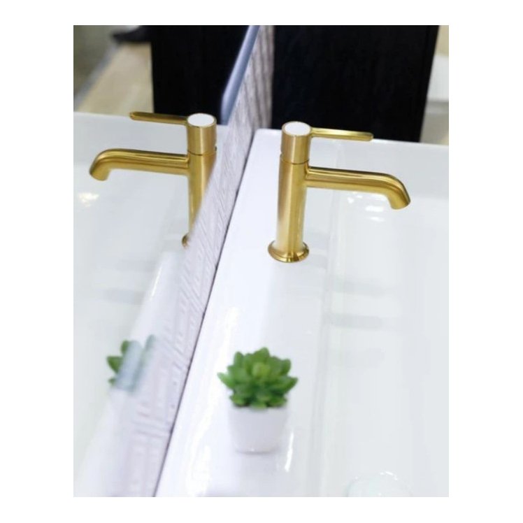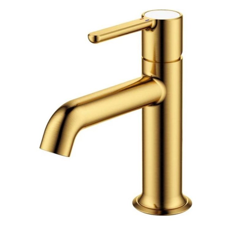 Смеситель для раковины однорычажный, без донного клапана, брашированное золото