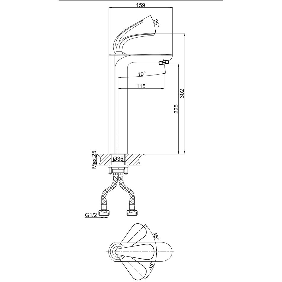Смеситель для раковины-чаши высокий DK (ДК) Venice Gondola (DA1022041) хром
