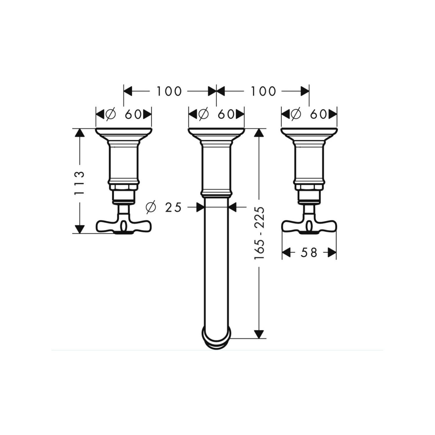 выступ: 165 - 225 мм