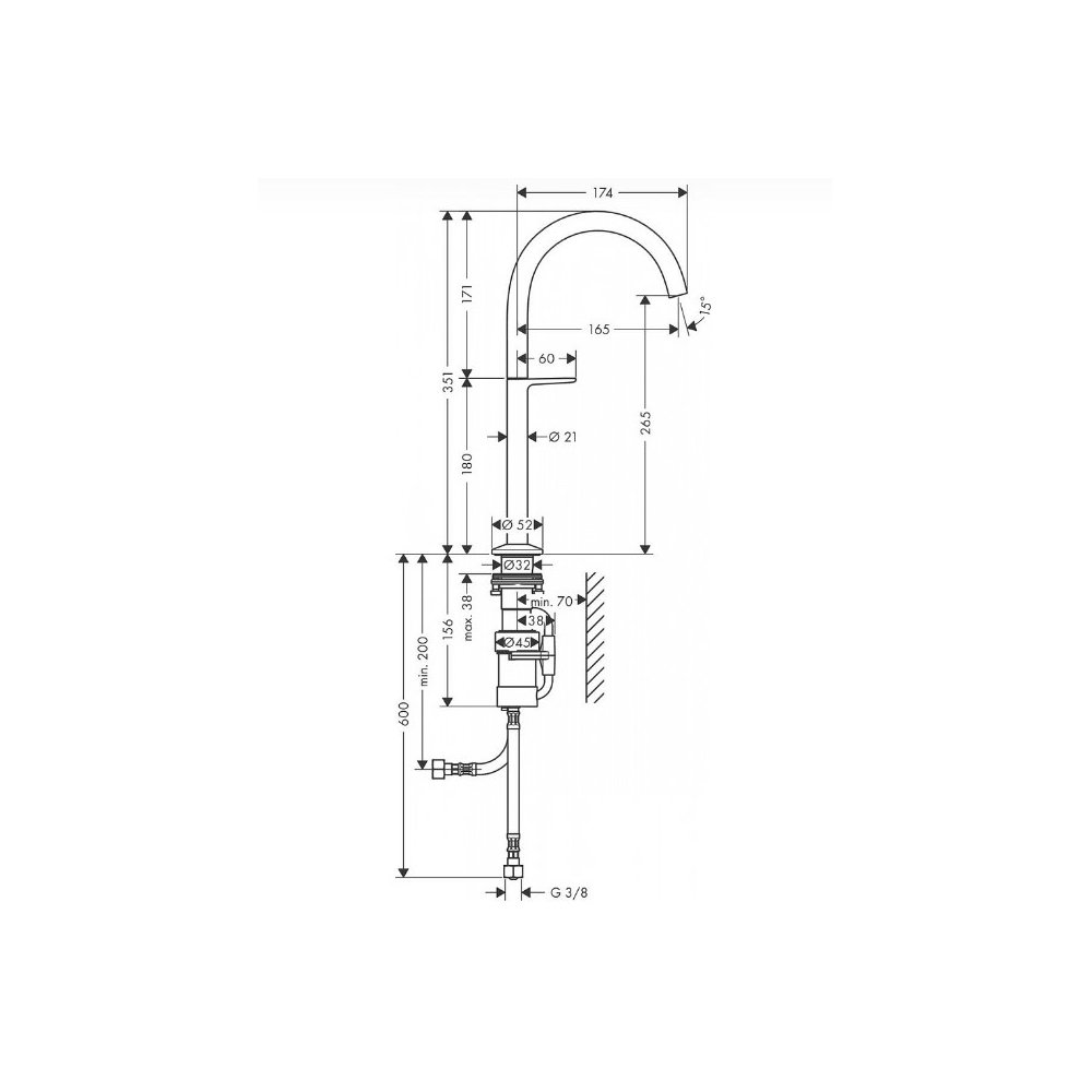 Встраиваемый смеситель Wasserkraft (Васеркрафт) для раковины Elbe 7400 черный (7445)