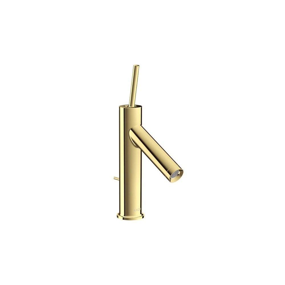 AXOR Starck 10111930 Однорычажный смеситель для раковины, цвет изделия - 930 (полированная латунь), картридж джойстикового типа, расход воды 5 л/мин, аэратор QuickClean, в комплекте со сливным гарнитуром (донный клапан) 1¼ дюйма, подходит для работы с проточным водонагревателем, гибкий подвод воды ⅜ дюйма.