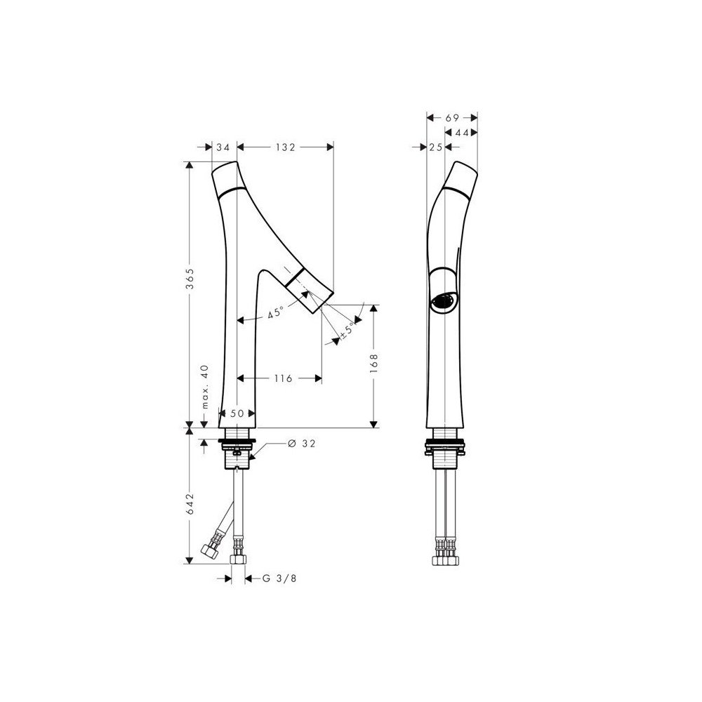 Смеситель для раковины Axor (Аксор) Starck Organic в форме таза, с двумя рукоятками, без донного клапана 12012000 хром