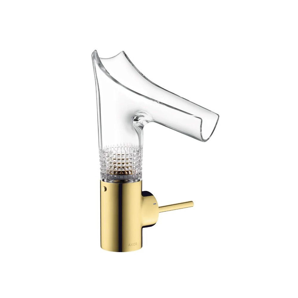 Смеситель для раковины Axor (Аксор) Starck V, однорычажный, 140, со стеклянным изливом, 12122990 Золото