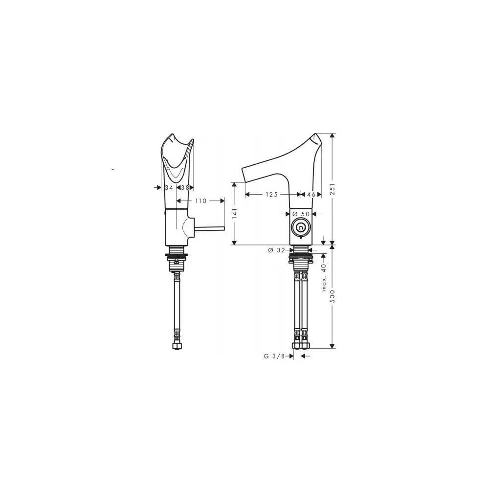 рукоятка расположена у основания корпуса (не подходит для раковины в форме таза)
