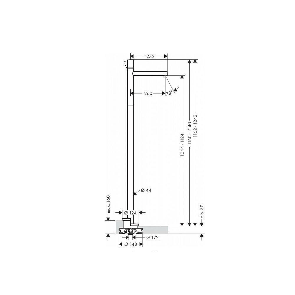 Смеситель для раковины Axor Uno, однорычажный, напольный