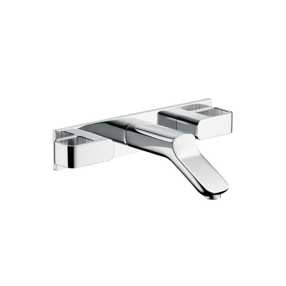 Смеситель для раковины Axor Urquiola, на 3 отверстия, излив 168мм, настенный, СМ внешняя часть для настенного монтажа керамические вентили ограничитель расхода воды до 5 л/мин защита от загрязнений QuickClean комплектуется не закрывающимся сливным вентилем подходит для проточных водонагревателей рекомендуем: скрытая часть (10303180)