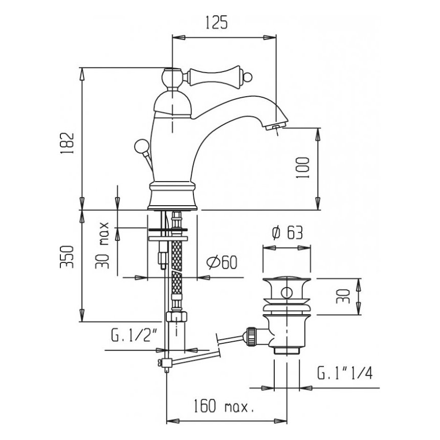 Длина излива (мм):125 p>