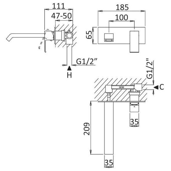 Длина излива (мм):209 p>