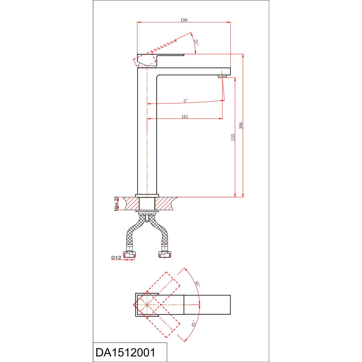 Высота излива (мм):255 p>