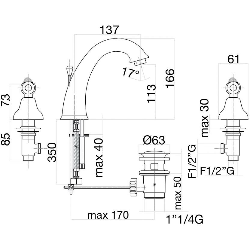 Смеситель для раковины Fiore (Фиоре) Coloniale Sky (Swarovski) 03CO0628, хром/золото