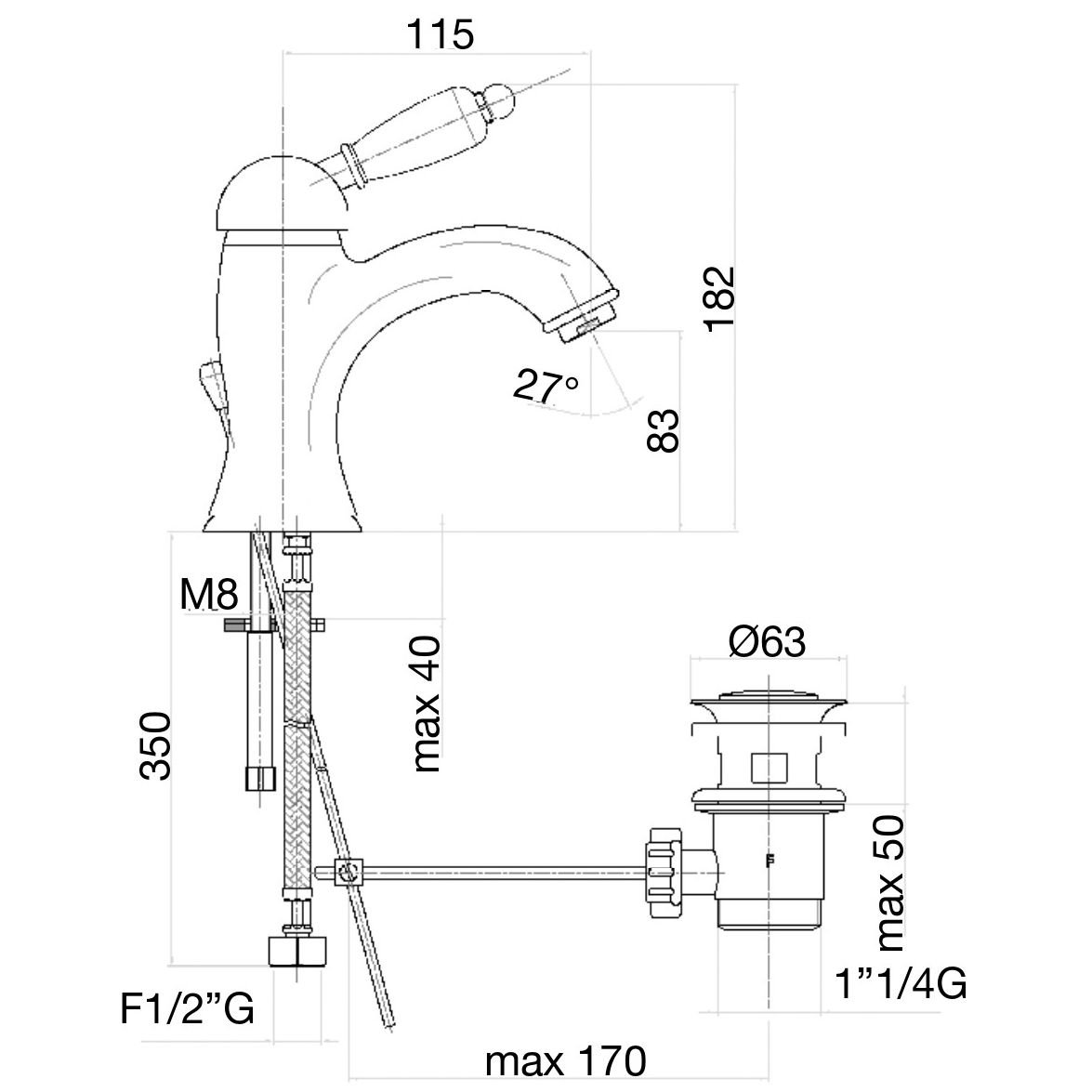 Высота излива (мм):83 p>