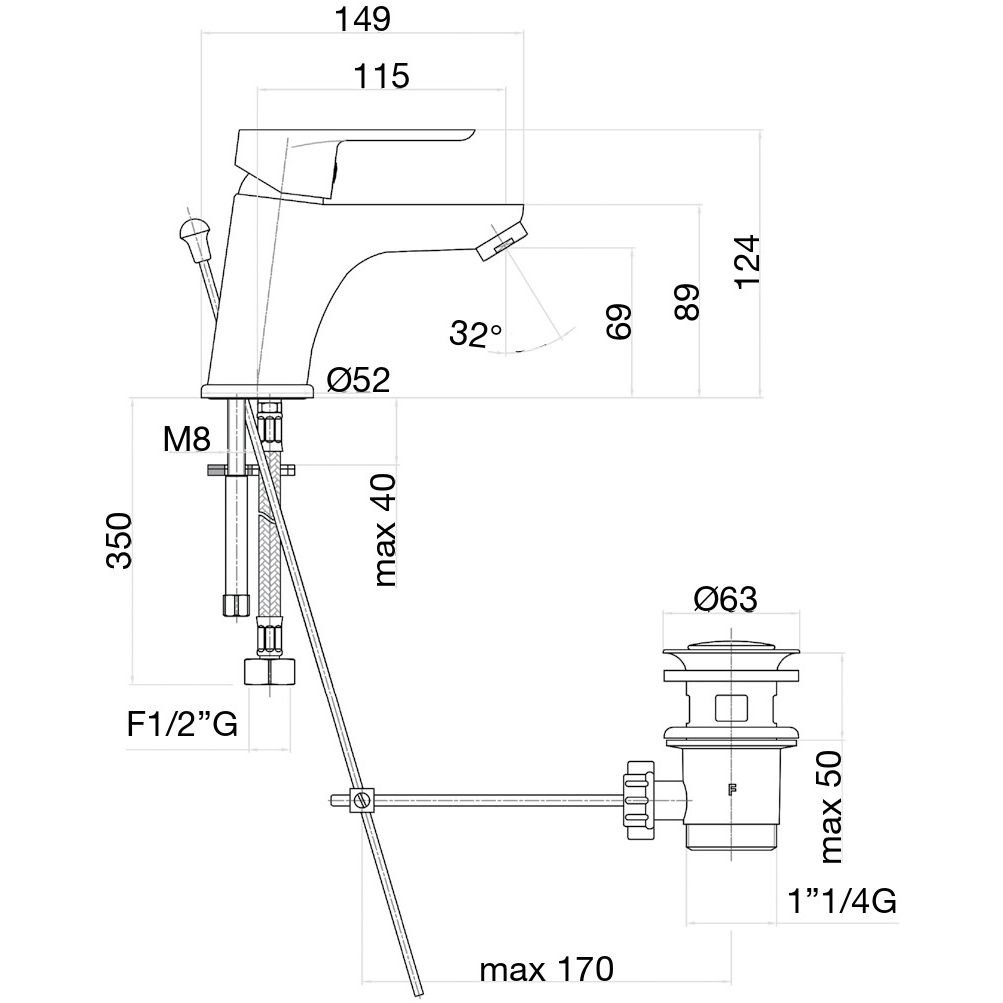 смеситель, донный клапан, подводка