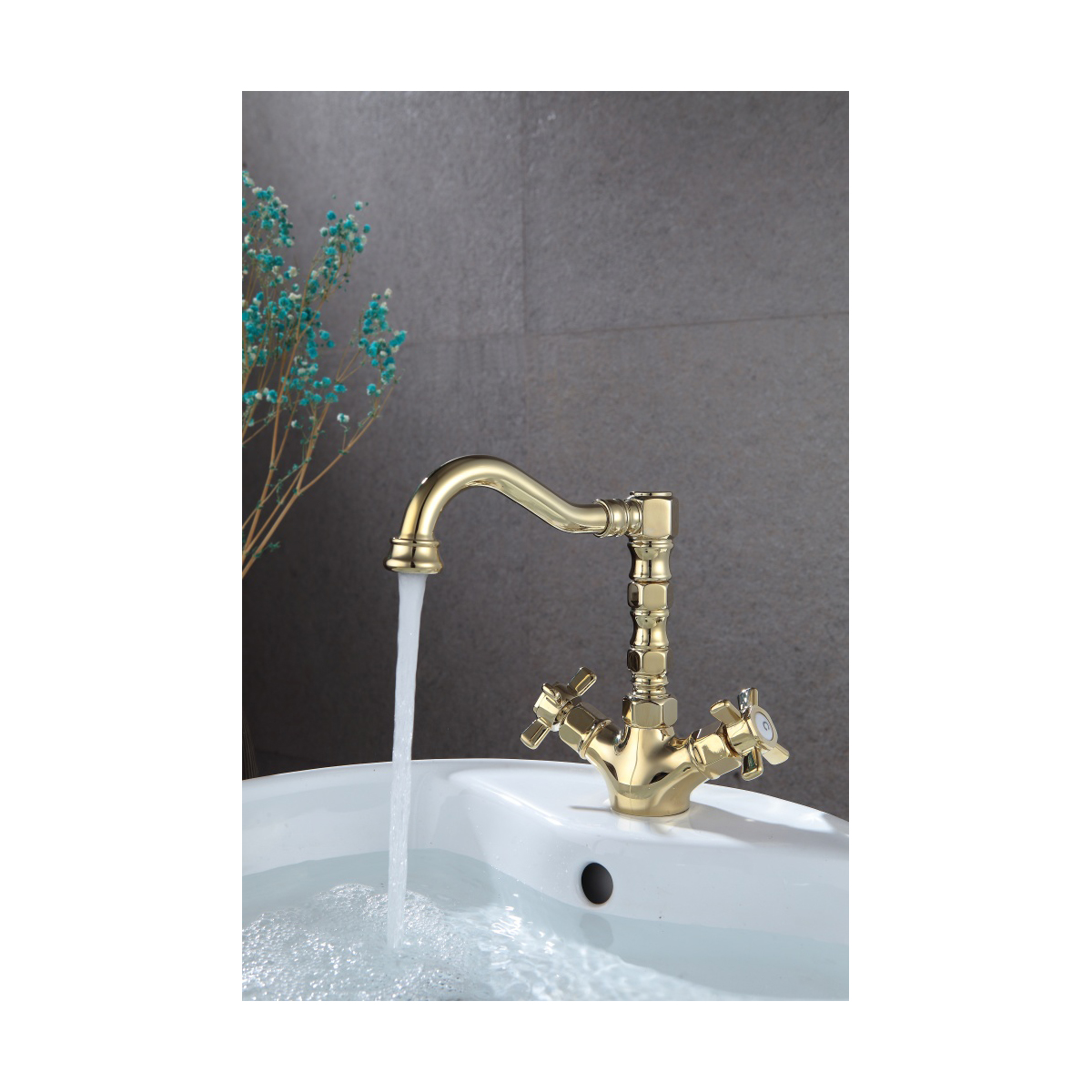 - Изысканный дизайн: Золотое покрытие придает смесителю уникальный и изысканный вид, который станет ярким акцентом в вашей ванной комнате.