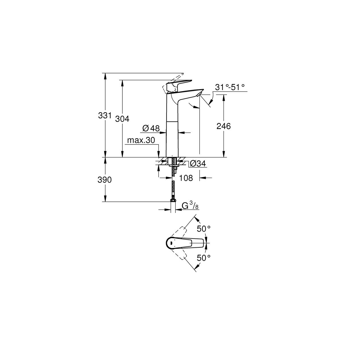 Смеситель для раковины Grohe (Гроэ) BauEdge XL-Size, хром 23761001