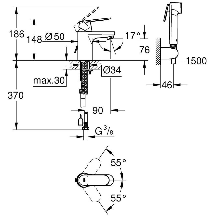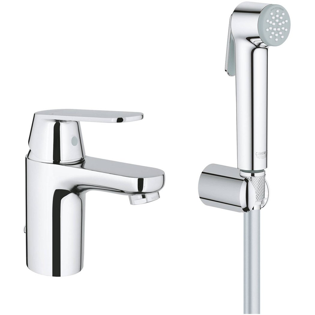 Смеситель для раковины GROHE Eurosmart Cosmopolitan с цепочкой и гигиеническим душем, S-Size, хром (23125000)