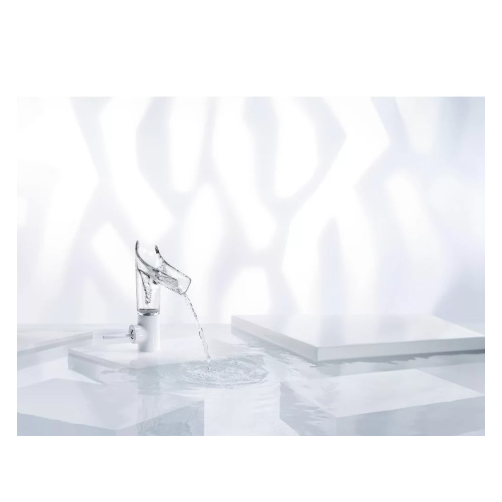 Смеситель для раковины Hansgrohe (Хансгрое) Axor Starck V 140 со стеклянным изливом 12112340 шлифованный черный хром