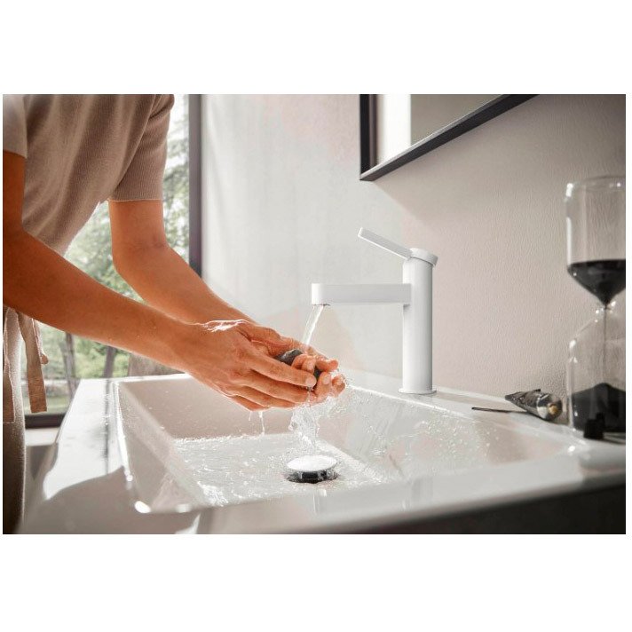 Смеситель для раковины Hansgrohe (Хансгрое) Finoris со сливным гарнитуром 76020700, белый матовый