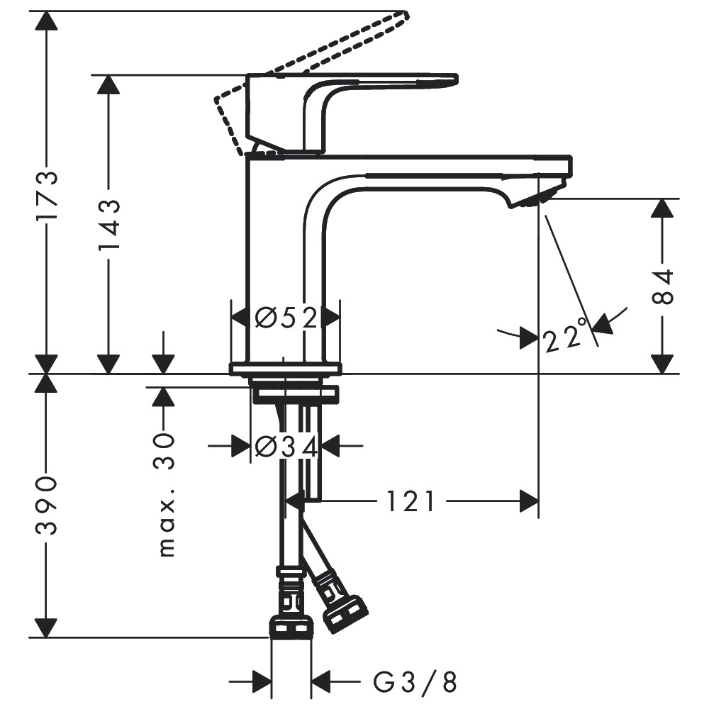 Смеситель для раковины Hansgrohe (Хансгрое) Rebris E 80 CoolStart без сливного гарнитура 72554000 хром