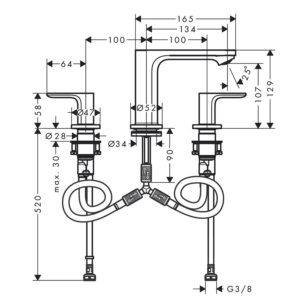 Доставка Смеситель для раковины Hansgrohe (Хансгрое) Rebris S 110 на 3 отверстия со сливным гарнитуром 72530000 хром из Москва в районы и города ЮВАО, ЮЗАО, ЮАО, Новомосковский АО, Одинцово, Подольск, Щербинка, Троицк, Строительный рынок Славянский мир, 41-й км МКАД, бывшая Мельница, Красногорск, Домодедово, Тёплый стан, Коммунарка, Мосрентген, Видное, Мамыри, Краснознаменск