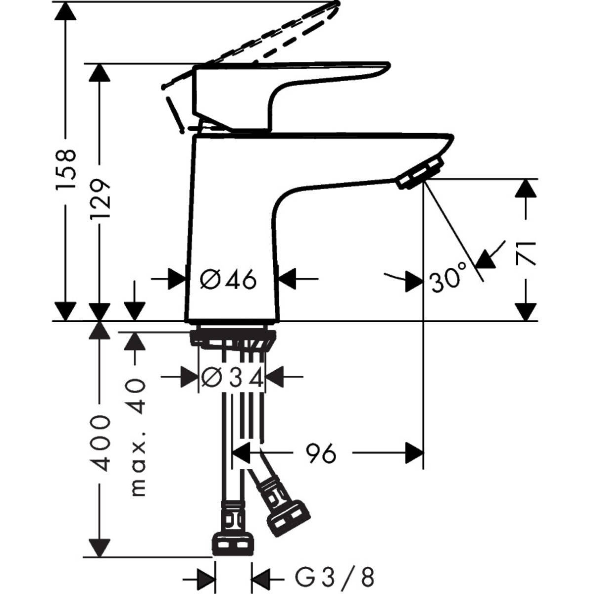 Смеситель для раковины Hansgrohe (Хансгрое) Talis E 80 однорычажный со сливным клапаном push-open 71701000 хром