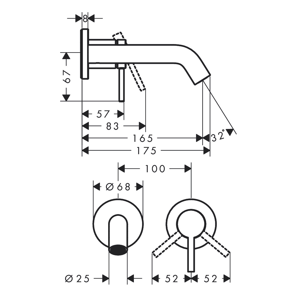 Смеситель для раковины Hansgrohe (Хансгрое) Tecturis S однорычажный для скрытого монтажа настенный 73350000 хром